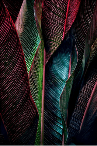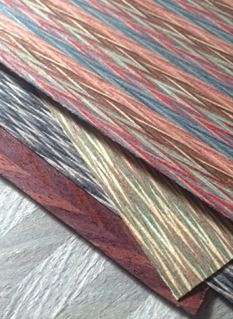 Tropical Grains- Color is used to re-energize natural patterns and textures for high-summer. Tropical leaf and exotic wood-grain patterns feature a mix of bright and natural tones together, helping to enliven turned wood products and veneers, as well as basketry, interiors and apparel textiles.