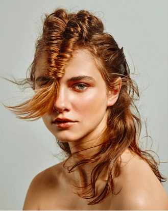 The PyschoTropic trend, hair stories are inspired by hyper-tropical references with plastic-like, wet-look updos, and textural updos featuring braids and twists.