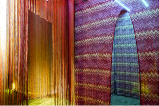 Euphoric Ombré- Psychedelic colors and materials evoke a sense of high-energy euphoria. Filtered neon lighting creates an uplifting mood for interiors and other physical environments, while dichroic finishes, off-register printing and ombré color harmonies give products and materials a sense of positive energy.