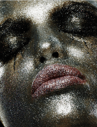 Use glitter-saturated surfaces that have a mesmerizing, color-shifting quality and a coarse feel to create impact.