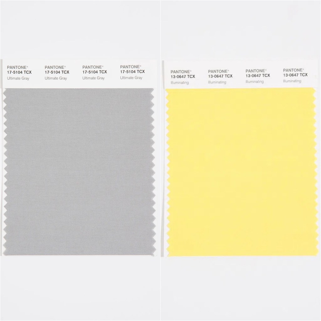 “Pantone 13-0647 Illuminating is a bright and cheerful yellow sparkling with a vivacity, a warming yellow shade imbued with solar power. Pantone 17-5104 Ultimate Grey is emblematic of solid and dependable elements which are everlasting and provide a firm foundation. The colors of pebbles on the beach and natural elements whose weathered appearance highlights an ability to stand the test of time, Ultimate Grey quietly assures, encouraging feelings of composure, steadiness and resilience.”